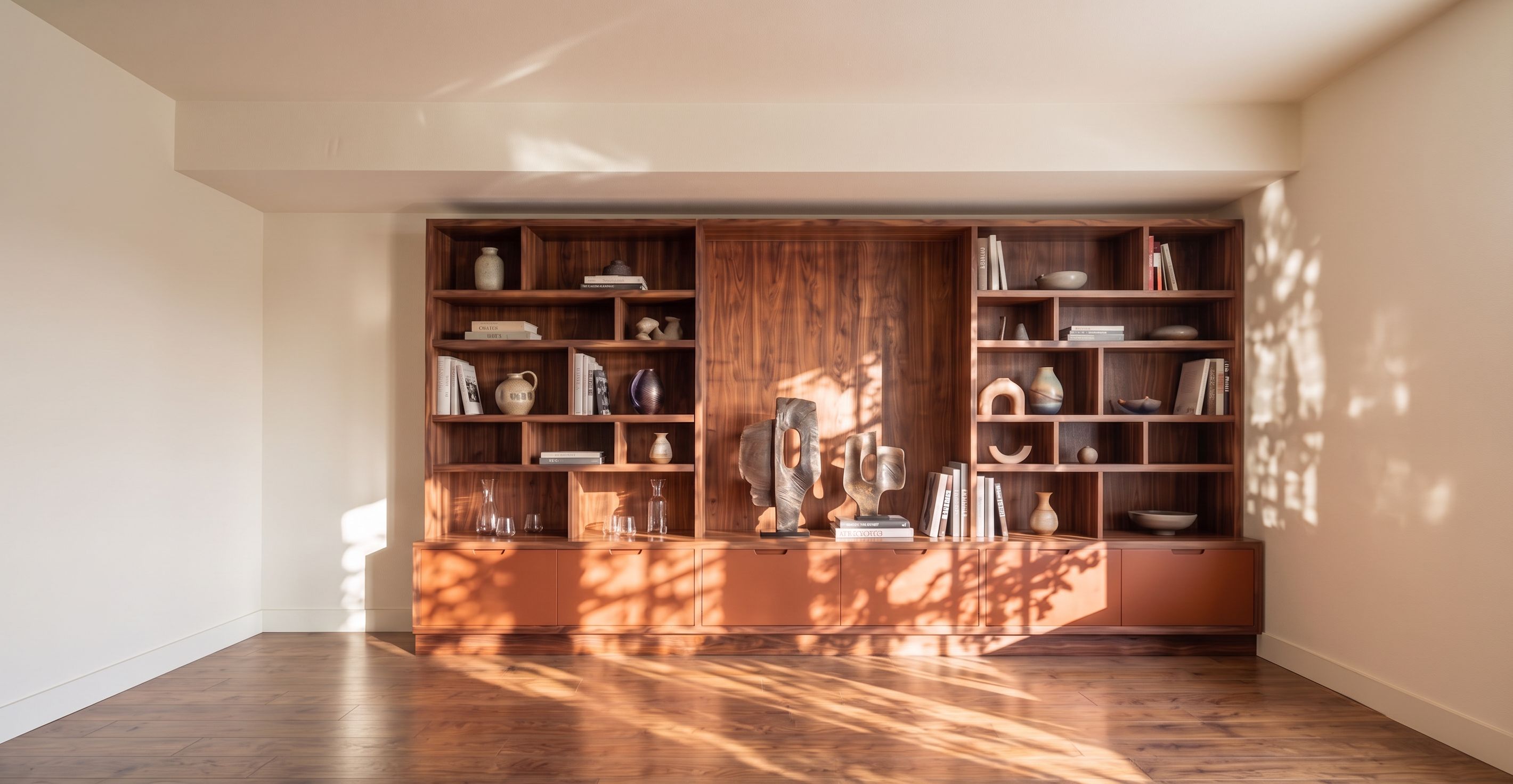 Promptcreate a rendering of this wall. use the attached reference photo for finishes , keep exact camera angle