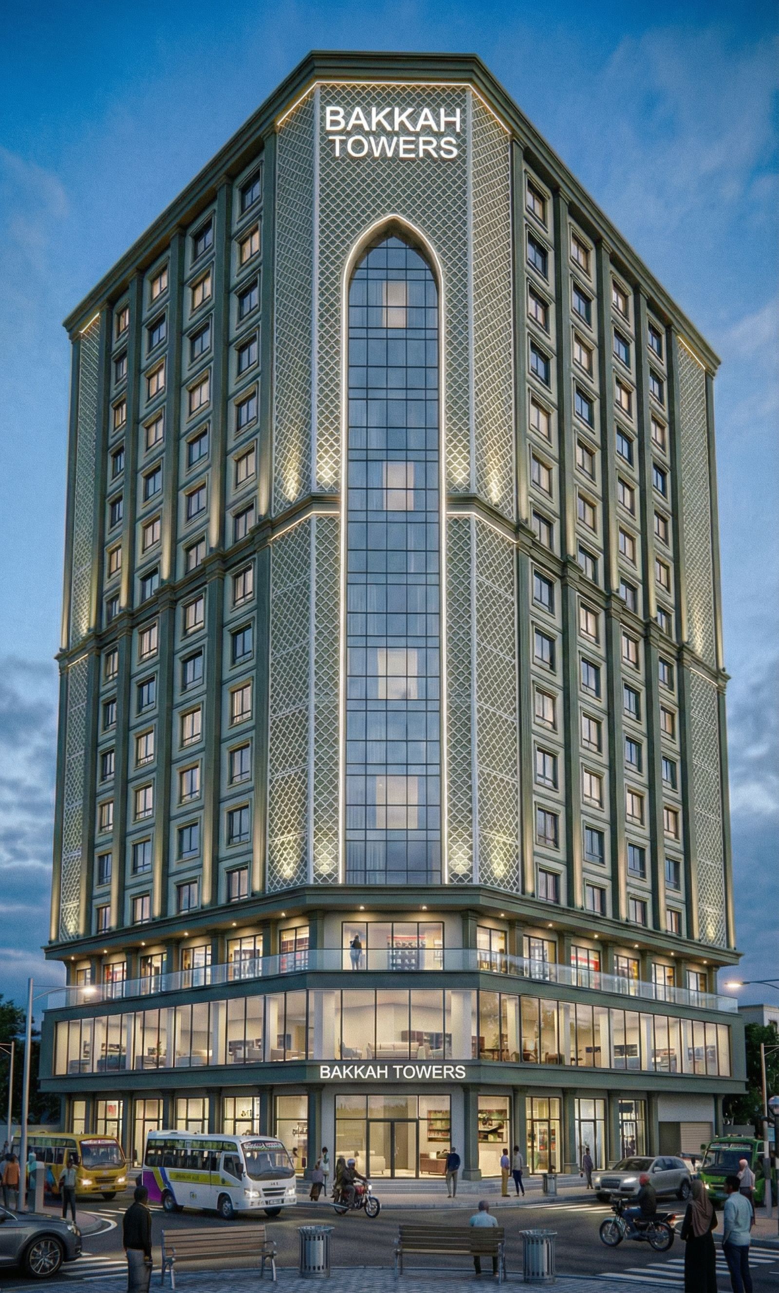 PromptCHANGE HT COLOUR OF THE BUILDING TO THE COMBINATION OF COLOURS IN THE RFEFERENCE IMAGE. MAINTAIN CAMERA ANGLE AND SHOW WHOLE IMAGE., keep exact camera angle