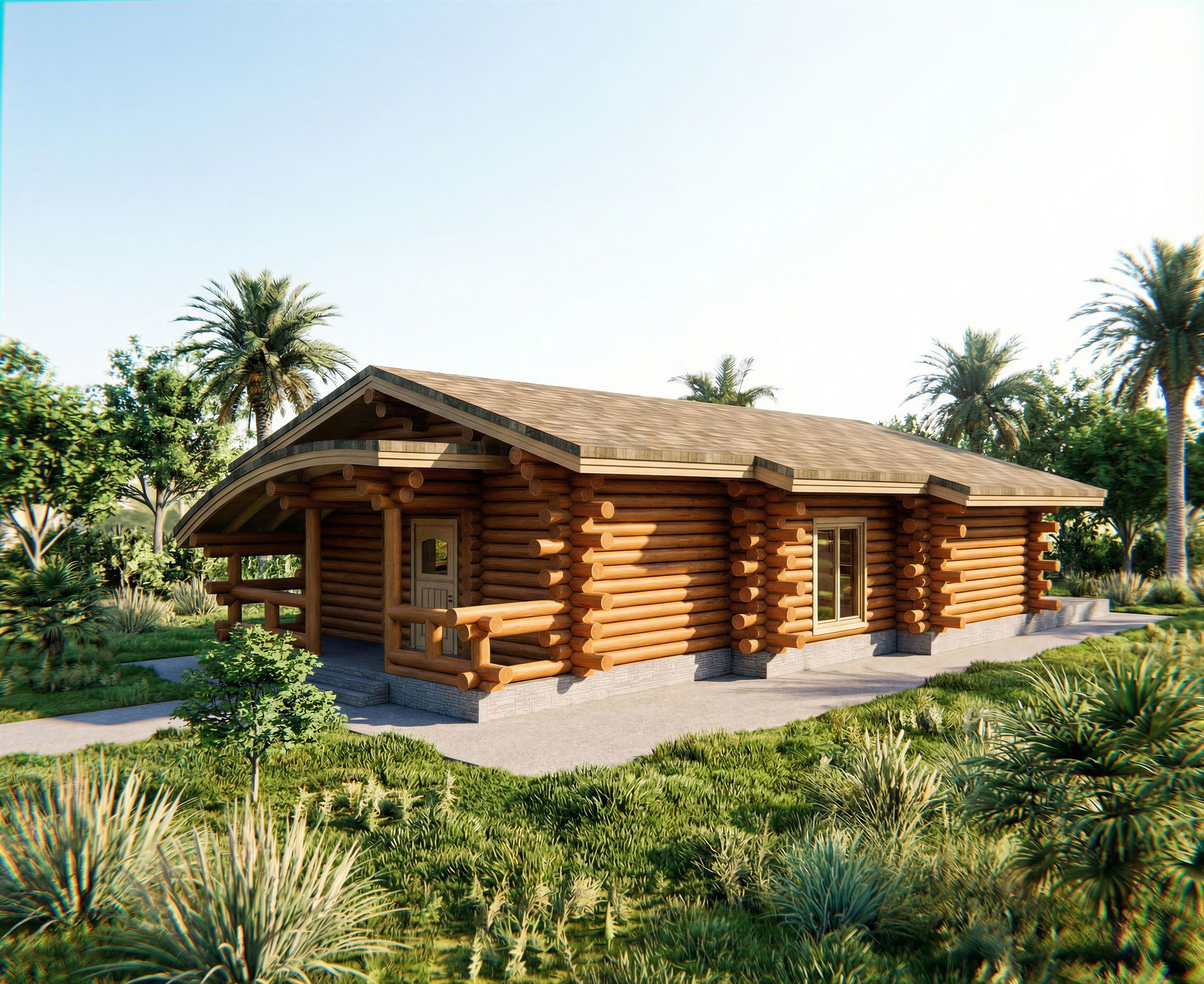 Prompta honey-brown log house with a shingle roof, located in a green area of the United Arab Emirates, keep exact camera angle