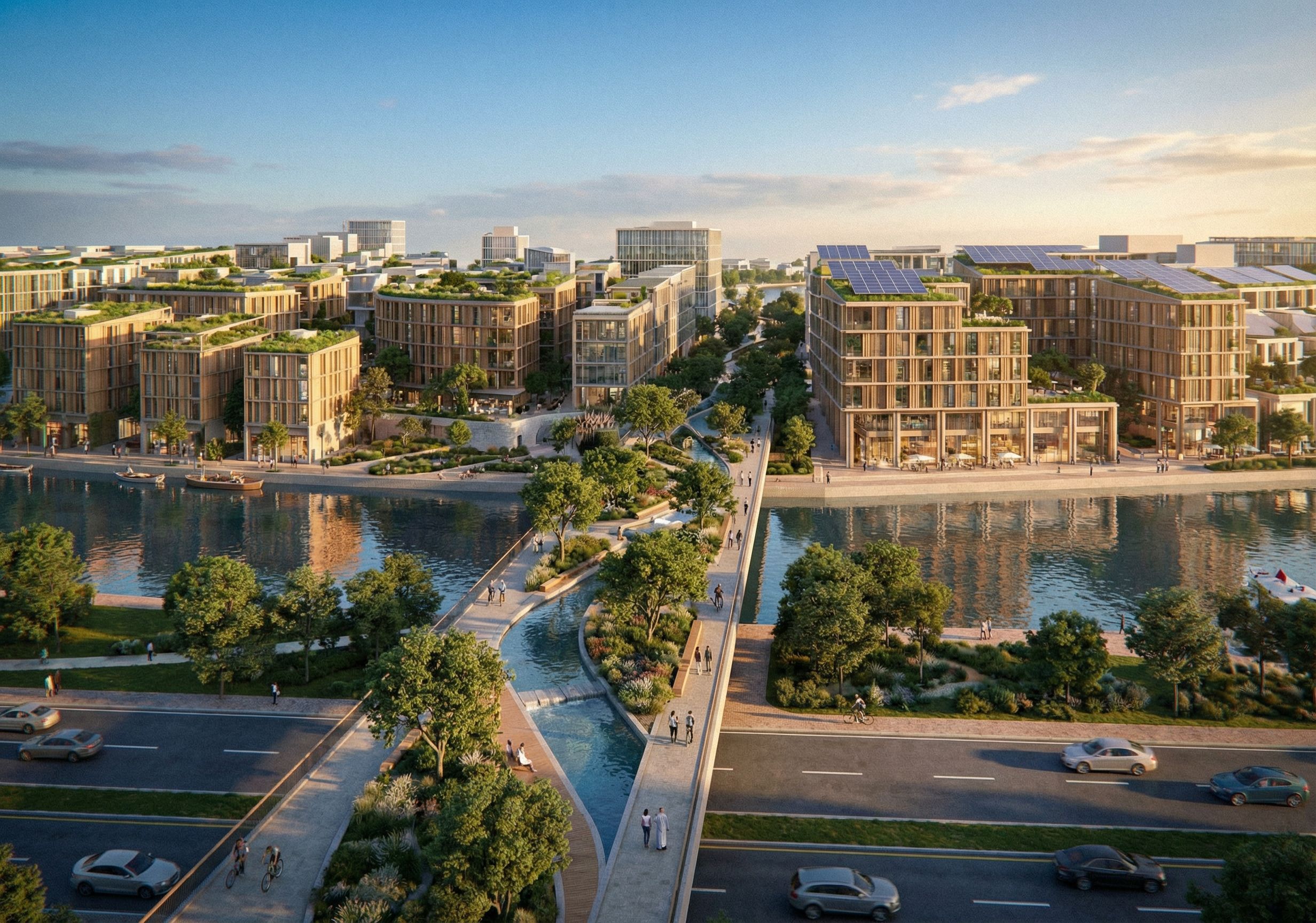 Promptsustainable mixed use buildings and landscaped bridge pedestrian parks, in Bahrain