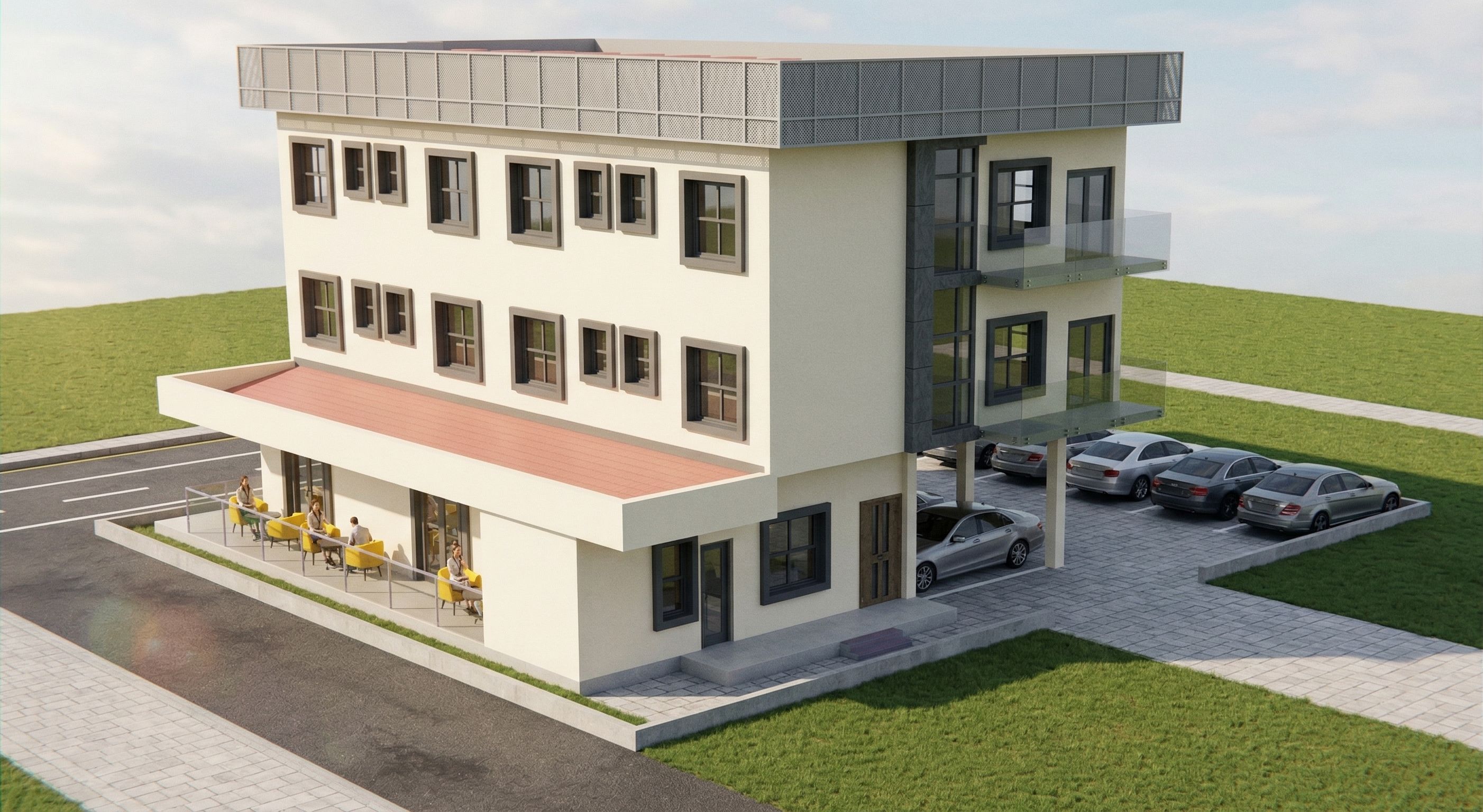 conserve l'ambiance de l'image mais utilise de code de couleur de l'image de référence pour le choix de la peinture. pas d'écriture sur l'image a générée. je ne veux pas les bâtiments autour de image. utilise le même style de toiture que l'image de référence., keep exact camera angle